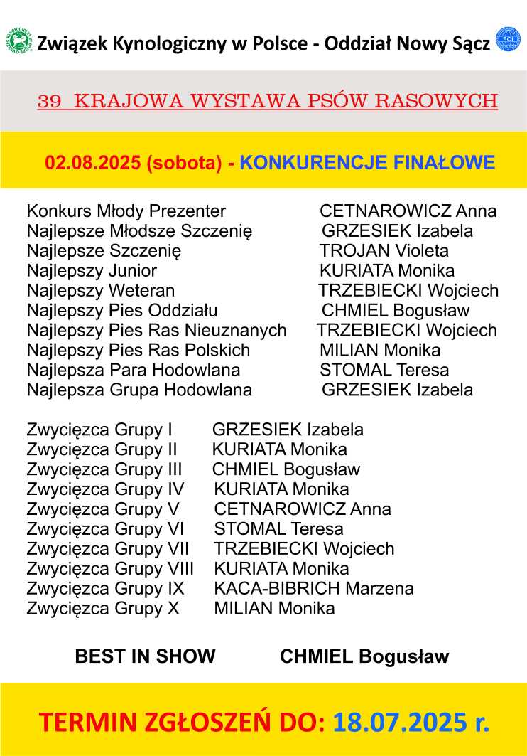 XXXIX Krajowa Wystawa Psów Rasowych - 02.08.2025
